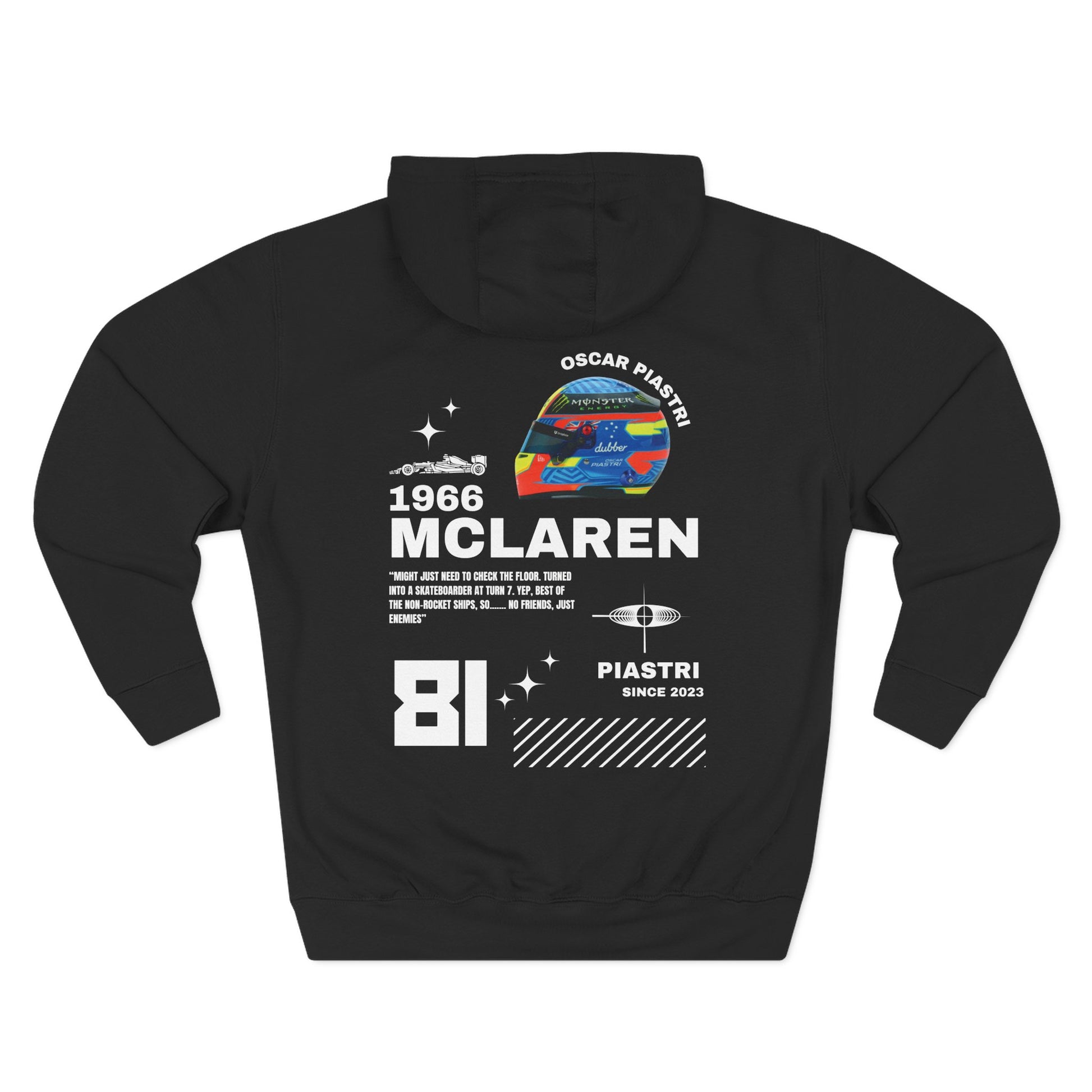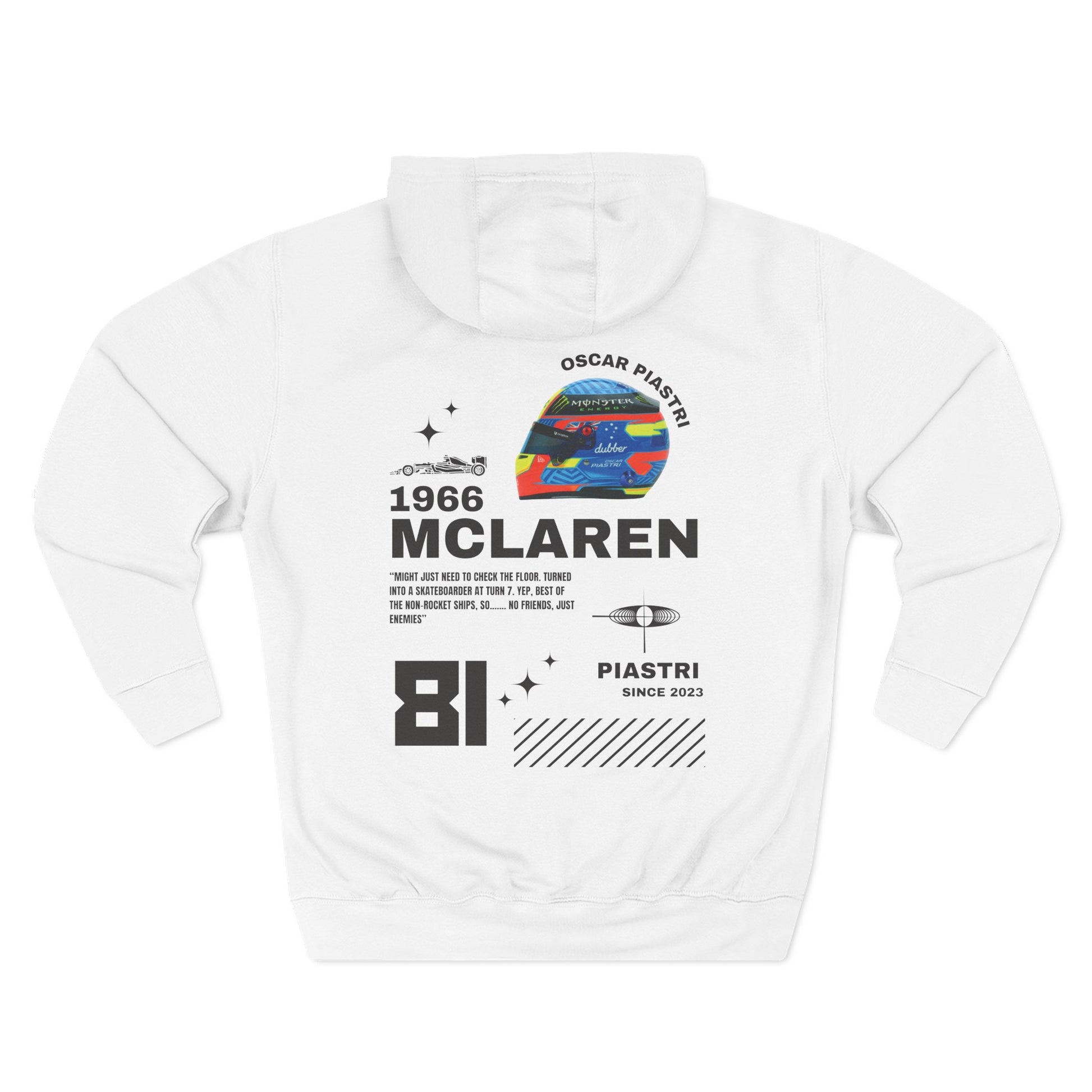 Rising talent. Relentless drive. The Oscar Piastri Hoodie is built for fans backing the next generation of Formula 1 greatness. A blend of bold design and everyday wearability, it’s made to keep pace with your lifestyle.